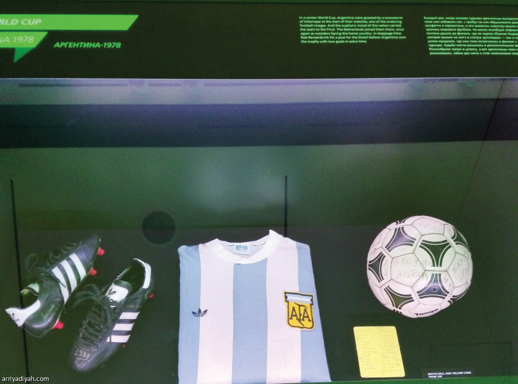 ويضم المتحف أحذية قديمة للاعبين وكرة كأس العالم قبل 50 عاماً، إضافة إلى مقاطع فيديو لبطولات كأس العالم في الستينيات والسبعينيات الميلادية، كما يضم المتحف قمصان المنتخبات المشاركة في كأس العالم الحالية ومن ضمنها قميص المنتخب السعودي.