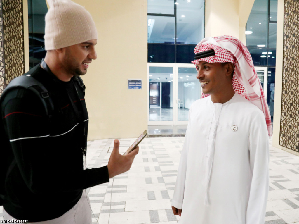 صورة التقطت أمس لفهد مسعود يتحدث إلى الزميل ماجد هود تصوير: سعد العنزي