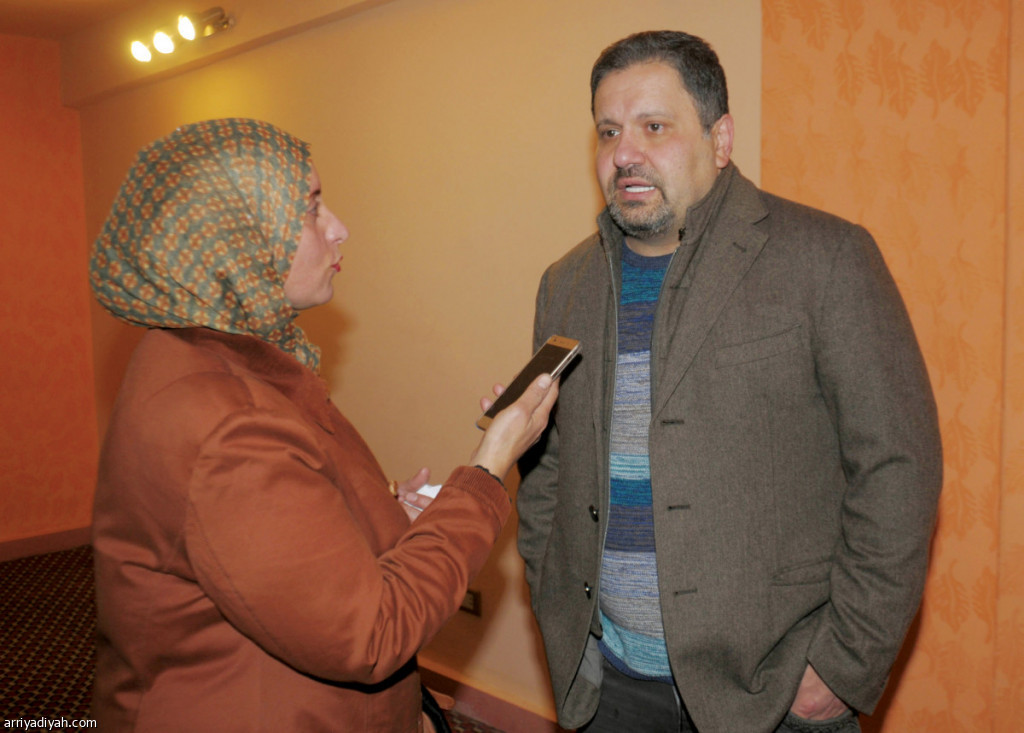 صورة التقطت للممثل إدوارد متحدثاً للزميلة حنان الهمشري تصوير: عبد الله السويسي