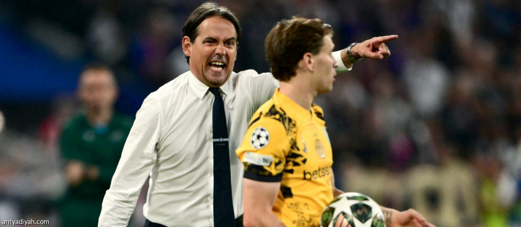 سيموني إنزاجي، مدرب إنتر ميلان الإيطالي، يوجه نيكولو باريلا لاعب خط الوسط الإيطالي خلال مباراة نهائي دوري أبطال أوروبا لكرة القدم أمام باريس سان جيرمان ( الفرنسية)