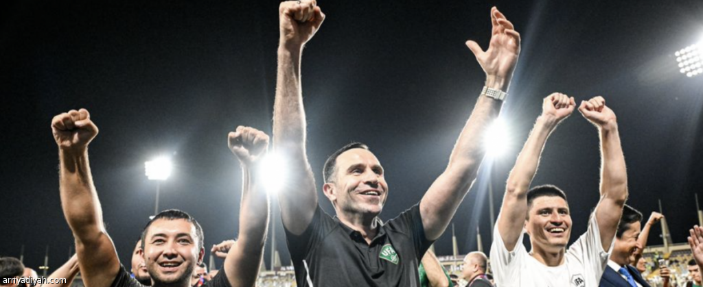 تيمور كابادزه، مدرب منتخب أوزبكستان الأول لكرة القدم، يحتفل بعد التأهل لكأس العالم، الخميس (المركز الإعلامي ـ الاتحاد الآسيوي)