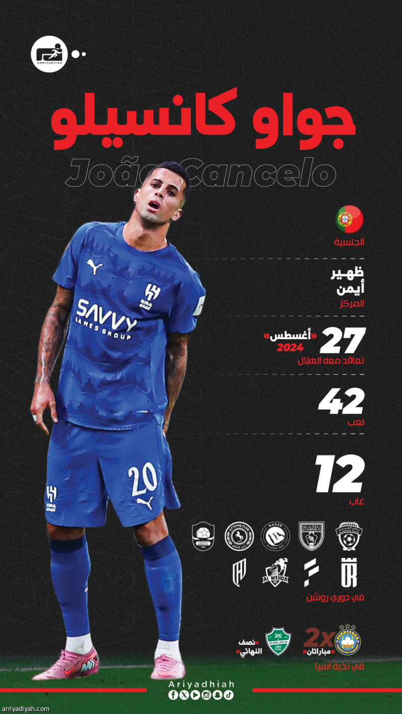 غيابات جواو كانسيلو عن الهلال بسبب الإصابة